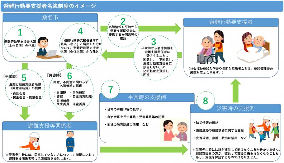 この制度は、普段からの地域の支え合い、助け合いの中で活用されることによって、災害時の被害を少しでも減らそうとするものです。名簿を作成、登録することによって、必ず災害時の支援が約束されるものではありません。