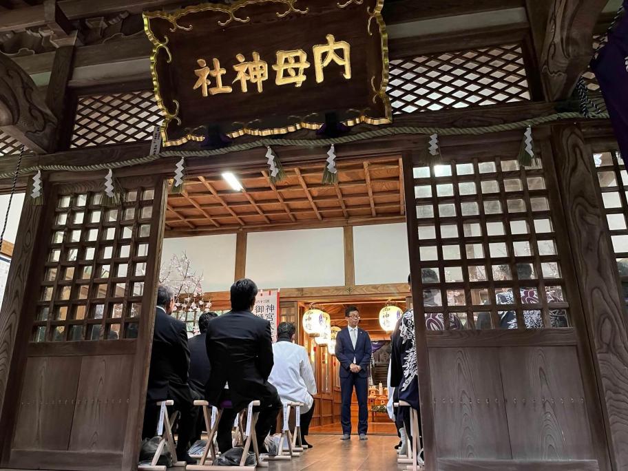 内母神社は、地域の方々から内母さんと親しまれており、毎年、この秋の例大祭に石取祭が行われています。各地区の祭車と鉦や太鼓を打ち鳴らす様子を拝見させていただきましたが、小さな子どもからご高齢の方まで、心を一つにして祭りを行う様子は地域の活力に欠かせないものであると改めて実感させていただきました。