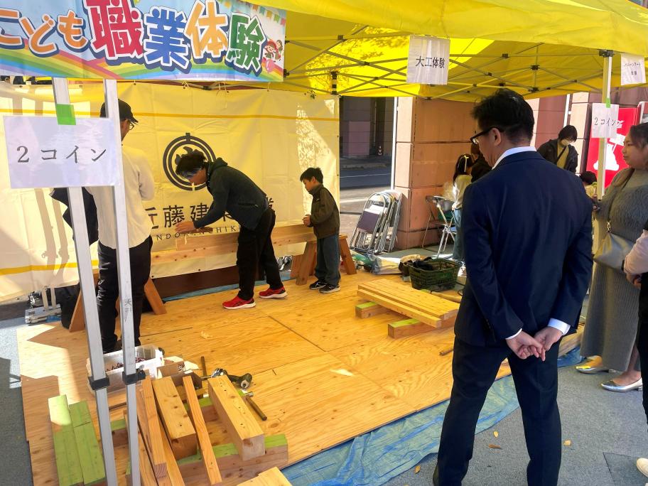 青年部による企画ブースや地元事業者の出店、楽しいステージイベントが盛りだくさんで、多くの家族連れで賑わっていました。子どもたちが楽しみながら学べる様々なブースが用意されており、職業体験や体力測定など、チャレンジ要素のあるブースへの人気が特に高かったように感じました。