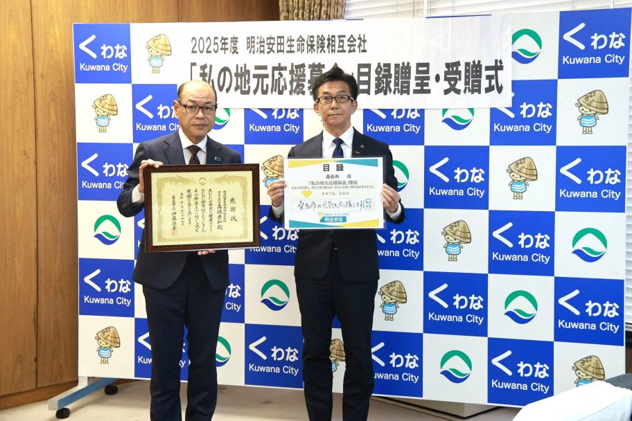 明治安田生命保険相互会社様より「市民の健康づくり」のためにと温かいご寄附をいただきました。
