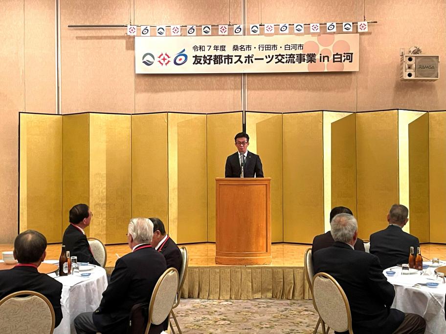 友好都市である福島県白河市で開催された「白河市・桑名市・行田市友好都市スポーツ交流事業 歓迎レセプション」に出席しました。