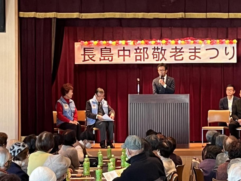 長島まちづくり拠点施設で開催された「長島中部敬老まつり」に出席しました。