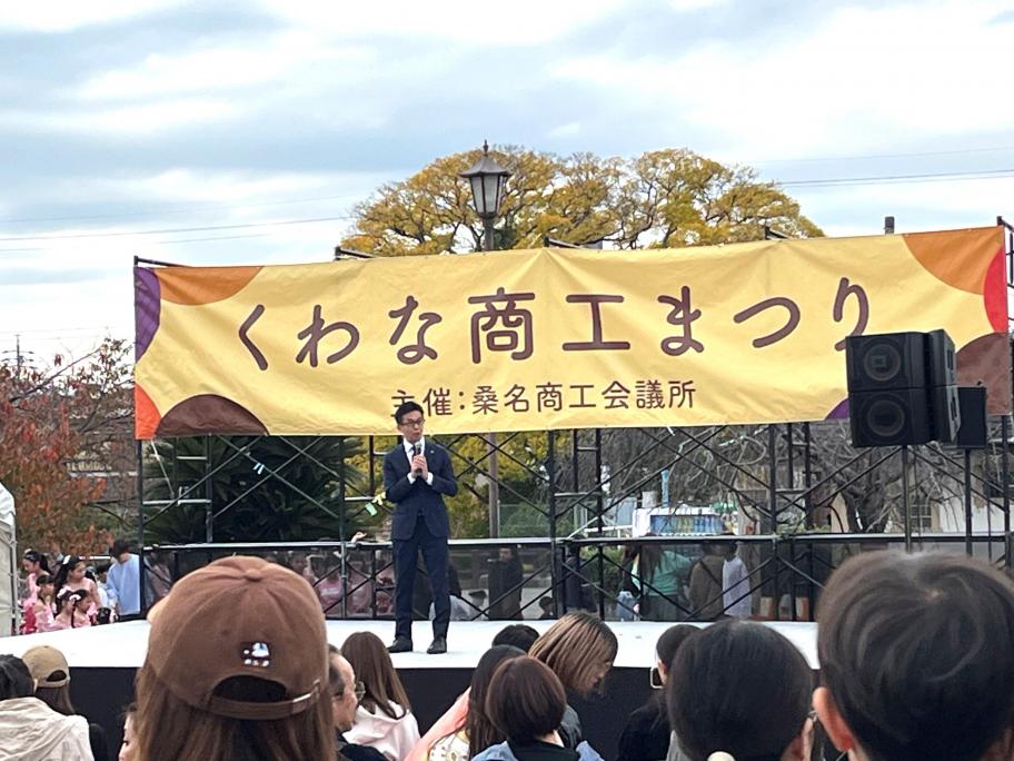 柿安コミュニティパークで開催された「第50回くわな商工まつり」を視察しました。