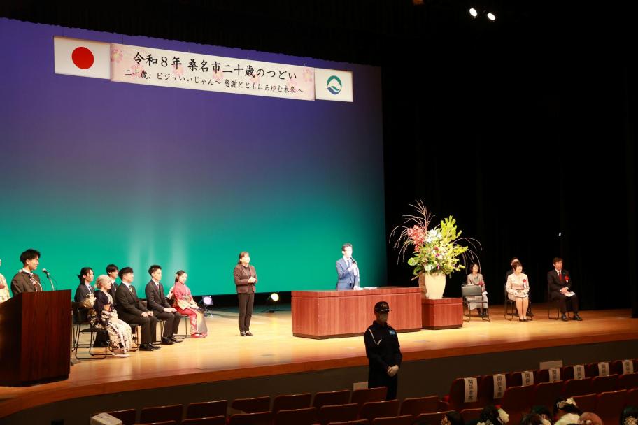 柿安シティホールで開催された「二十歳のつどい」に出席しました。
